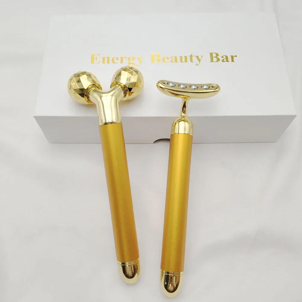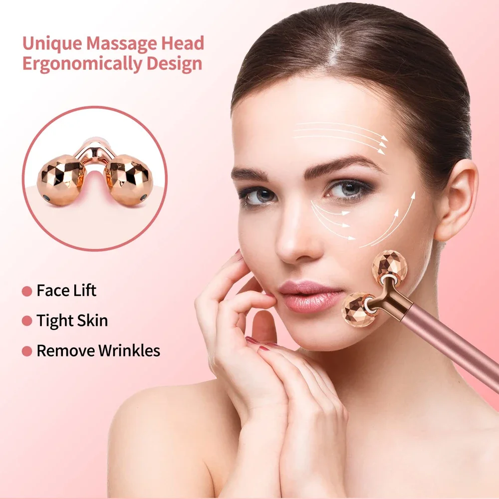 2-IN-1 Electric Face Massager Roller 24k Rose Gold Face Roller, 3D Roller and Unique Crescent Shape Facial Roller Massager Kit Arm Eye Nose Massager Skin Care Tools