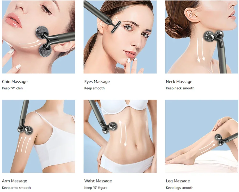 ❥❥3D Face Roller: The 3D roller has an excellent diamond-grade cutting surface, and the unique 3D "V" design with 70 degrees, effectively tighten the skin. This facial roller can be used not only on the face, but also on various parts of the body, such as arms and legs.